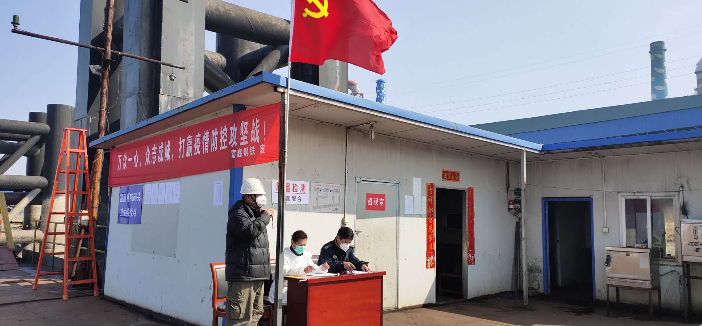 黨旗飄揚在戰(zhàn)“疫”一線!【全面部署,嚴防死守,確保疫情防控有力有序】近日,為堅決遏制新型冠狀病毒感染引起的肺炎疫情擴散,蕪湖市富鑫鋼鐵有限公司對所屬碼頭加強管控,抽調(diào)公司各部門管理人員,迅速成立碼頭衛(wèi)生檢疫站點。對碼頭生產(chǎn)運行進行實時監(jiān)控。對進出港船只人員進行嚴格管控,嚴禁下船操作,凡是來自重點疫區(qū)船只一律不得靠港。對碼頭作業(yè)人員規(guī)定時間進行體溫檢測。做到黨員干部靠前指揮,旗幟鮮明,宣傳標語口號響亮!防控措施有力!各部門上下協(xié)調(diào)通順,全力打贏碼頭疫情防控阻擊戰(zhàn)!